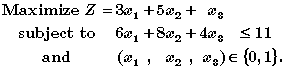 | To illustrate the branch-and-bound algorithm for Binary Integer Programming (BIP) presented in Section 12.6, consider the following BIP problem: |