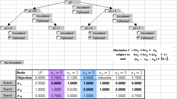 This is achieved by checking the "Fathomed" box below the node "x2 = 0"